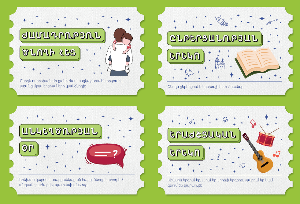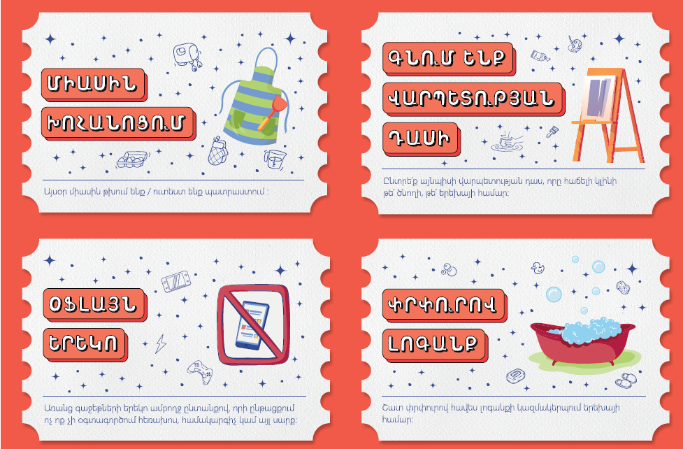 - Ապա հանձնե՛ք ընտրված քարտերով տուփը երեխային․